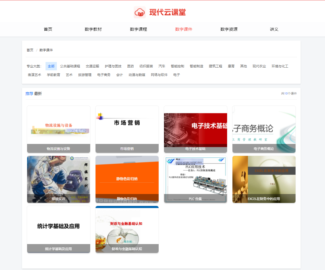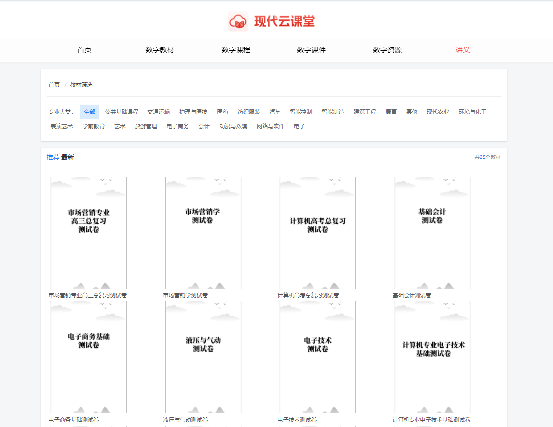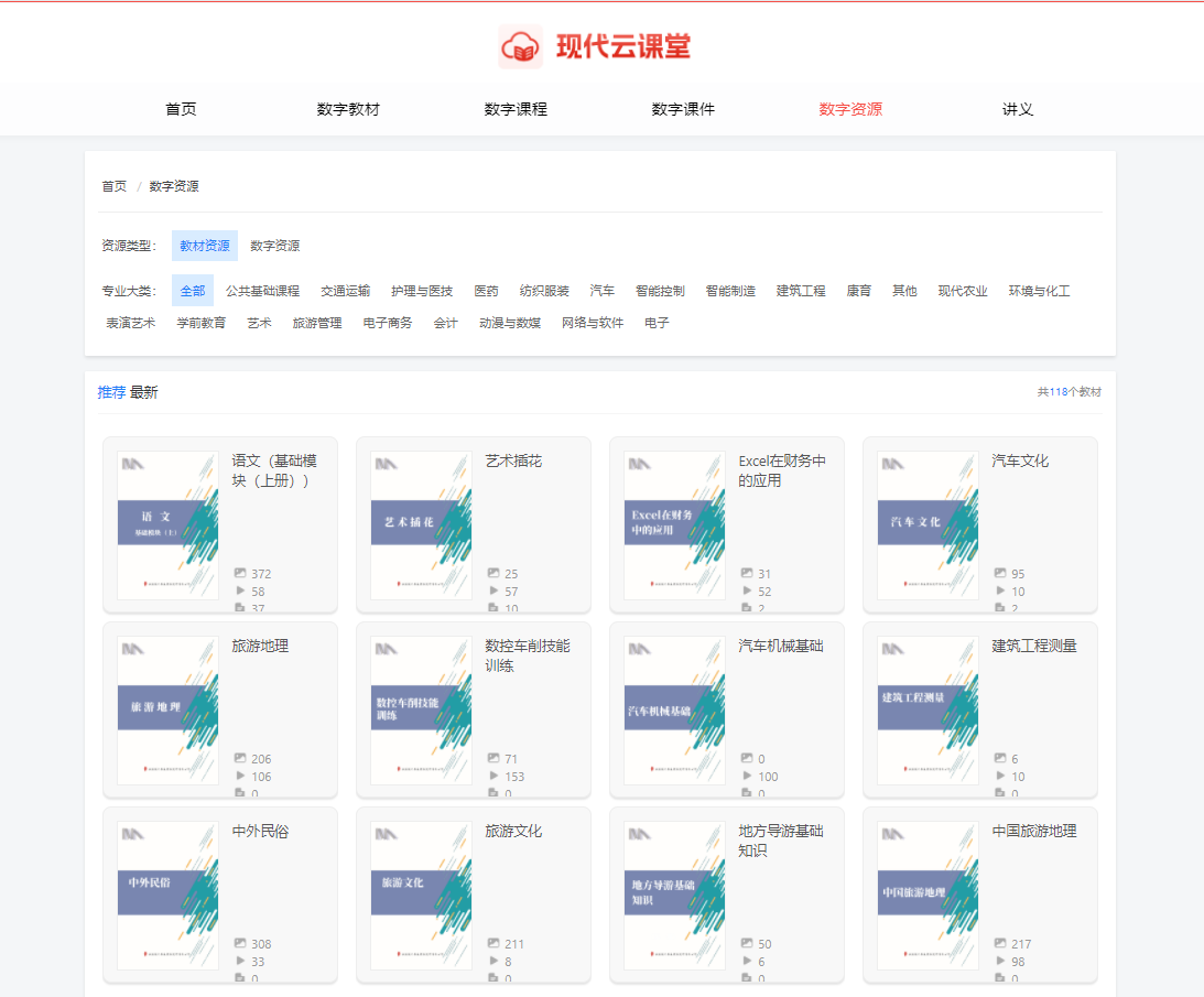 平台现有数字教材15本,讲义25套,数字课程118门,数字资源25482个。