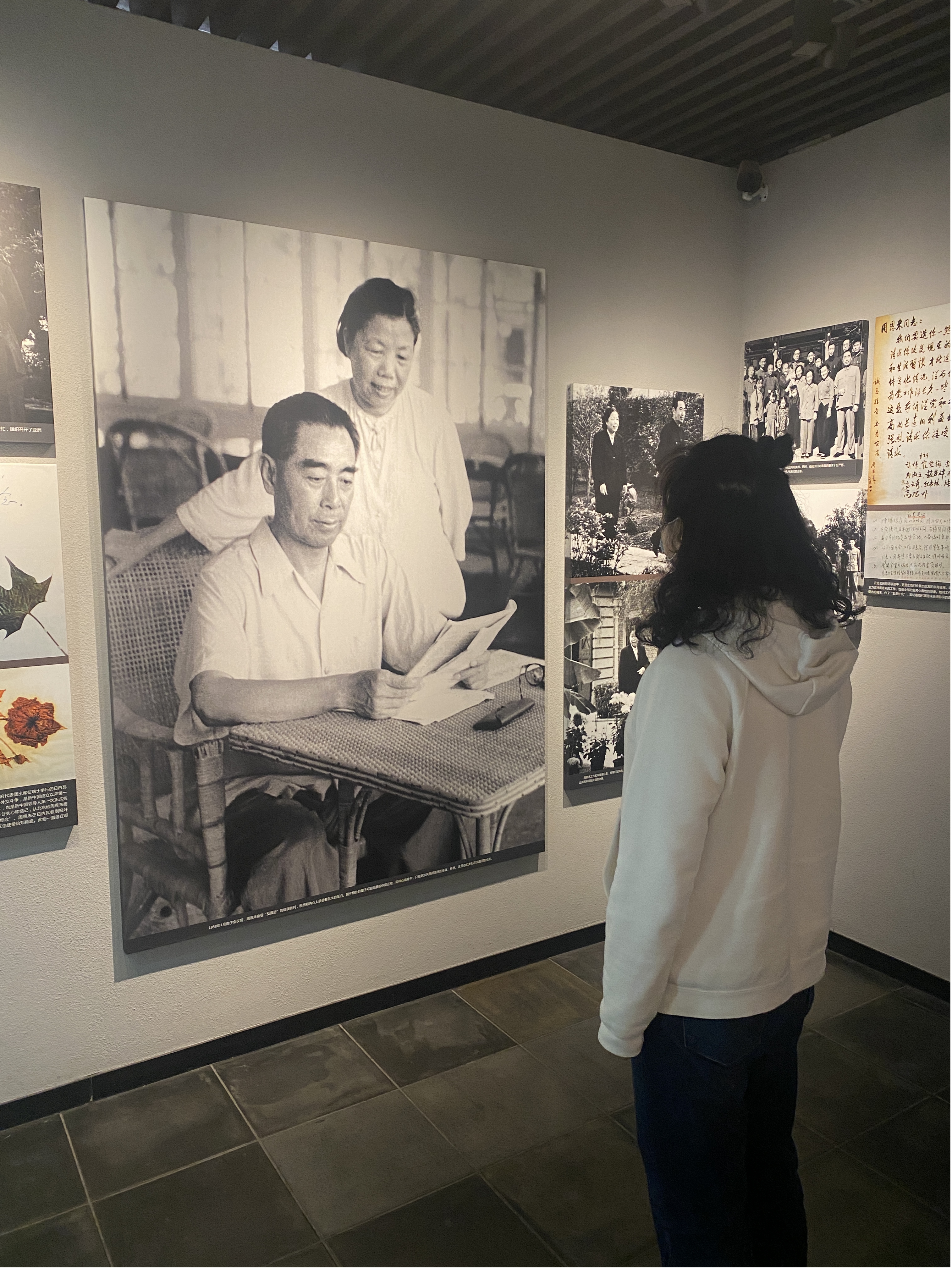 随后,大家参观了“人民总理周恩来”陈列展,在一幅幅泛黄的照片、一件件简朴的实物、一段段珍贵的影像资料前驻足凝视,认真听取讲解介绍,深切缅怀周总理的光辉一生。