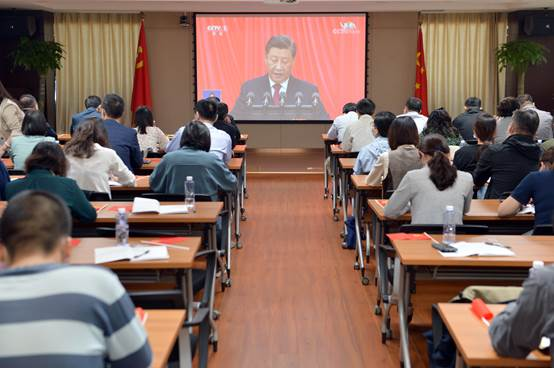 职教公司全体党员、党员发展对象和入党积极分子及中层以上人员,在公司大会议室集中观看了党的二十大开幕会现场直播。