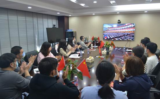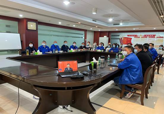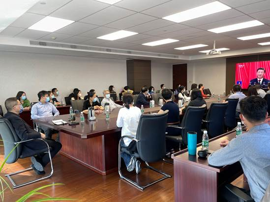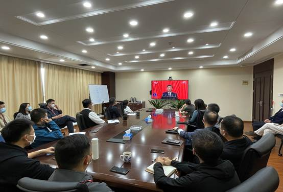 信息科技组织全体员工在会议室集中收看了党的二十大开幕会现场直播。