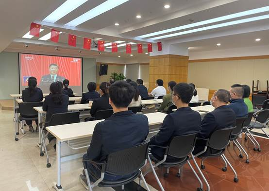 资产公司党总支组织公司广大党员、干部和职工分两地集中收看开幕会直播盛况。