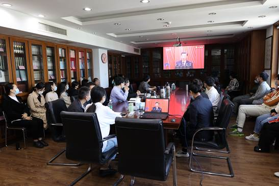 科技社组织党委成员、社委会成员以及中层副职以上干部集中收看了开幕会现场直播。