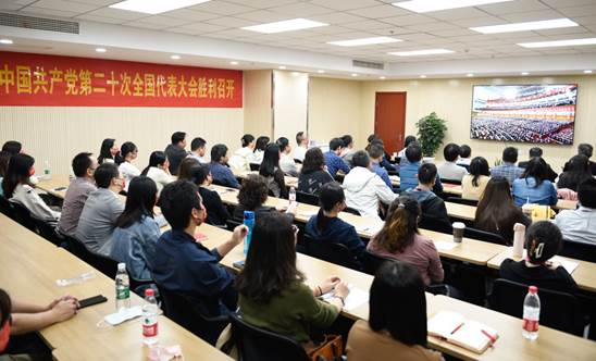 人民社组织全体在职党员、社委会领导和全体中层干部观看二十大开幕会。