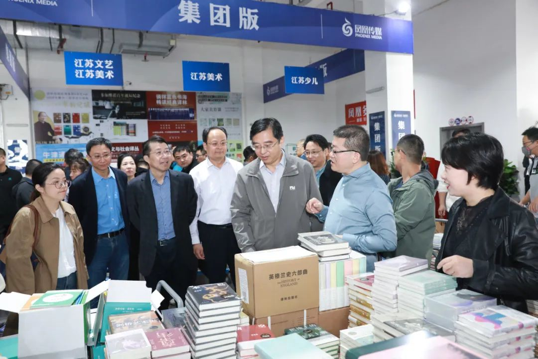 10月9日上午,凤凰集团党委书记、董事长章朝阳,党委副书记、总经理李贞强考察调研2023秋南京馆藏图书展销会。凤凰传媒副总经理、凤凰新华董事长金国华,凤凰新华总经理秦俊俊陪同调研。