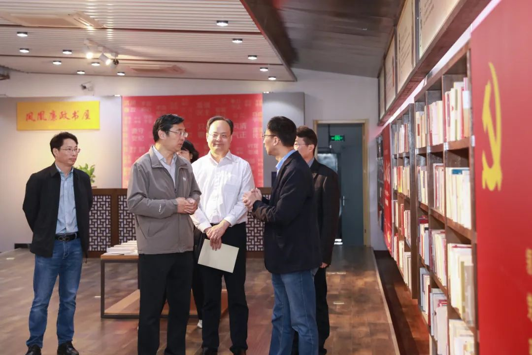 凤凰集团领导详细听取馆藏会整体情况介绍,以及重点图书、销售进度、技术支撑、服务保障等汇报,与集团内各出版单位进行沟通交流,并参观了解样本室、凤凰版本馆等运行情况。