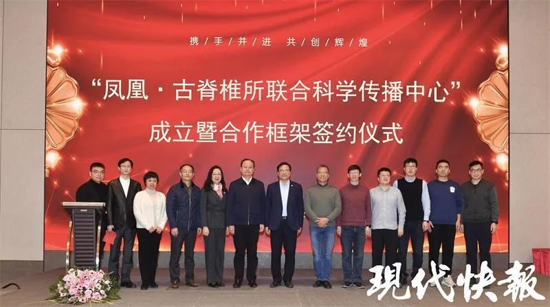 此外,中国科学院古脊椎动物与古人类研究所和江苏凤凰出版传媒集团举办了签约和揭牌仪式,正式成立“凤凰·古脊椎所联合科学传播中心”。凤凰出版传媒集团总经理、党委副书记李贞强表示,传播创新成果、推动科技创新,是科技出版的重要社会功能,也是科研单位和出版单位共同的社会责任和重要使命,“‘凤凰·古脊椎所联合科学传播中心’的成立,一定能够更好地承担起‘科学传播’的社会责任,将古生物学家写在祖国大地上的论文,刊印到纸质图书上,向世界讲好中国的科研故事,展示中国科学家的风采。”