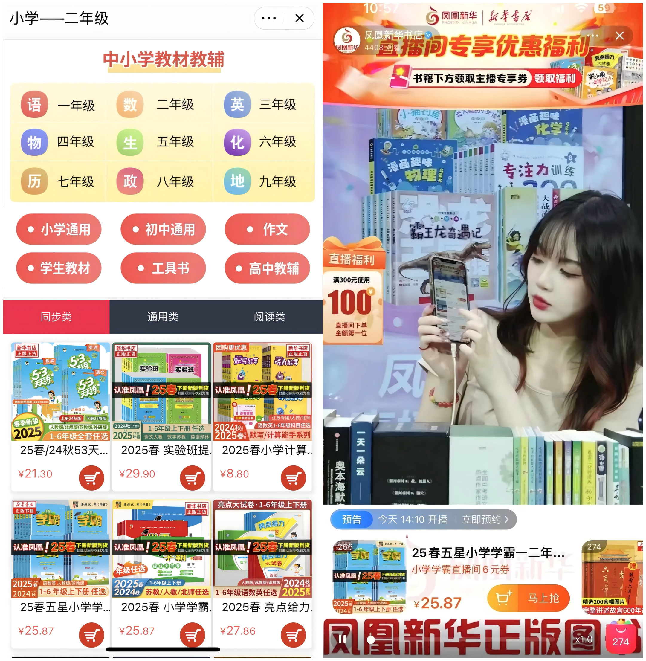 此外,凤凰新华在天猫、京东等第三方电商平台推出满减促销活动,用实打实的便利优惠为学生们送上新学期祝福。平台醒目位置设置开学季专区,精选了各类市场化教辅和阅读产品、文具文创产品等,供学生家长一键触达。“开学季书单”省心推荐大众畅销书,“开学季秒杀、便宜包邮”专场直播等营销活动更是将优惠力度拉满。凤凰新华还积极布局社群营销,推出“团购用户回购券”“开学季品种社群福利推送”“教辅选择攻略”“社群专属学习资料分享”等活动,为学子们提供更加精准、贴心的服务。