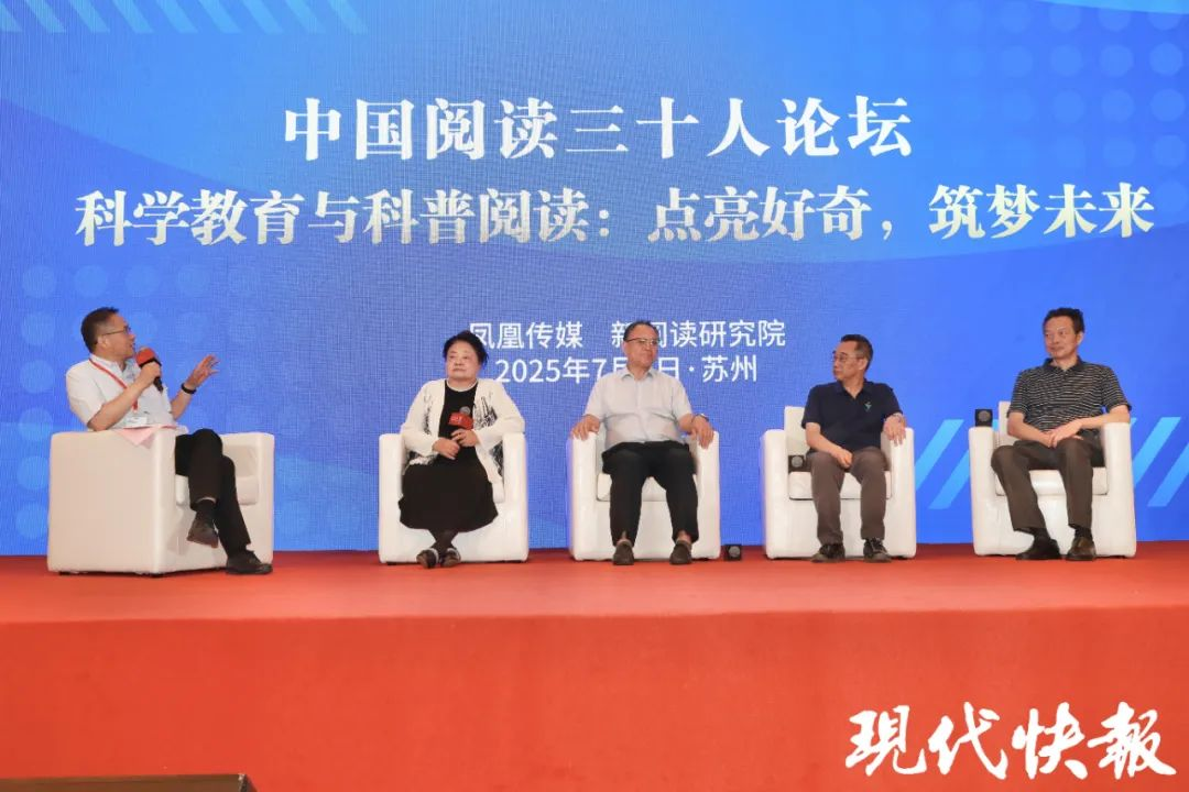 “中国阅读三十人论坛:科学教育与科普阅读”在发布环节之后举行。活动以“点亮好奇,筑梦未来”为主题,徐海与魏玉山、王余光、徐雁、周兢四位专家展开深度对话。
