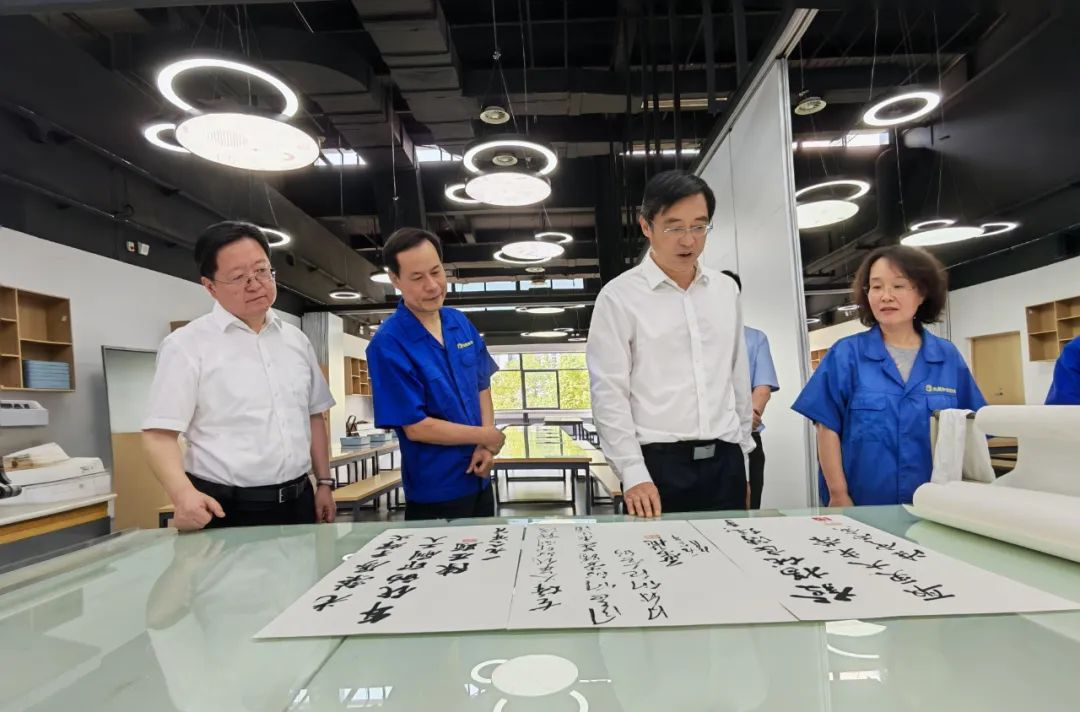 集团领导首先来到印务基地,深入印刷车间、装订车间,实地察看工人作业环境和生产设备设施运行情况,详细了解重点出版物、中小学秋季教材、精品出版物等图书印制进度和质量管理情况。每到一处,集团领导将一件件防暑用品送到职工手中,叮嘱大家注重劳逸结合,做好自我防护,以健康的身体、饱满的状态开展工作。在刚刚开馆的凤凰印刷博物馆,集团领导仔细观看博物馆的布展情况,对博物馆的成功开馆给予充分肯定,希望博物馆进一步把握市场需求,进一步加大与集团兄弟单位的联动,进一步丰富展陈内容,进一步开发文创周边,使博物馆成为观众喜爱的印刷技艺传承基地和青少年研学实践基地。