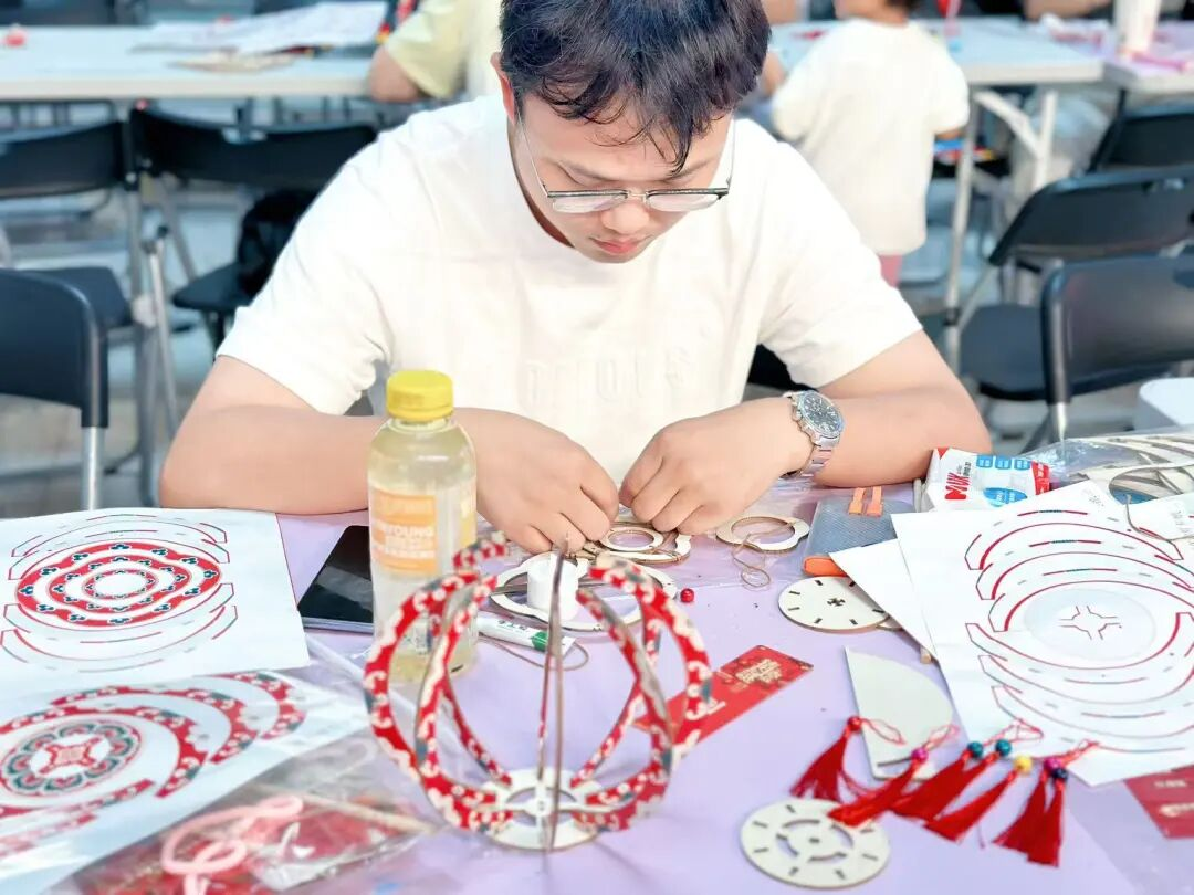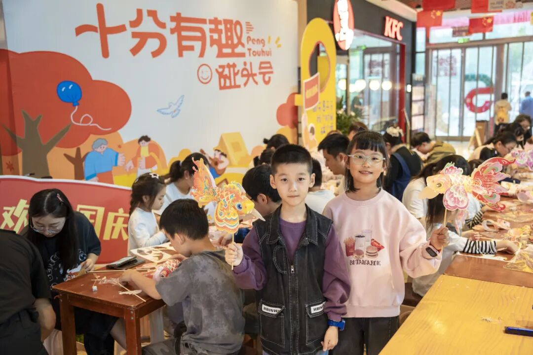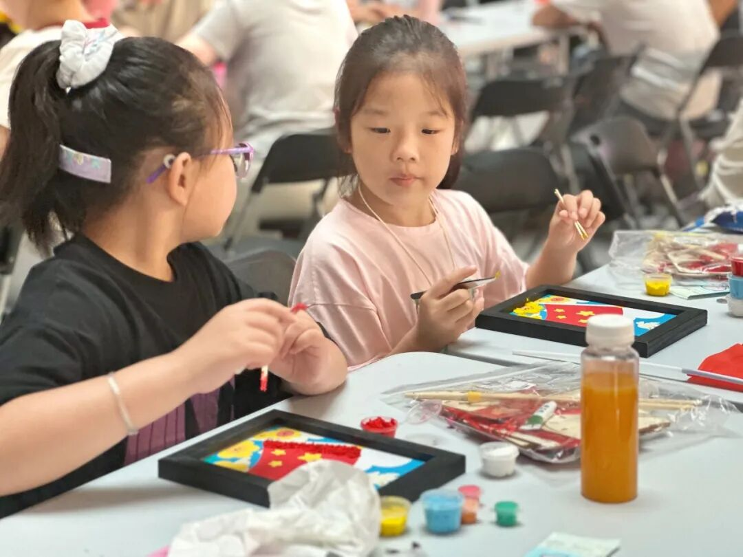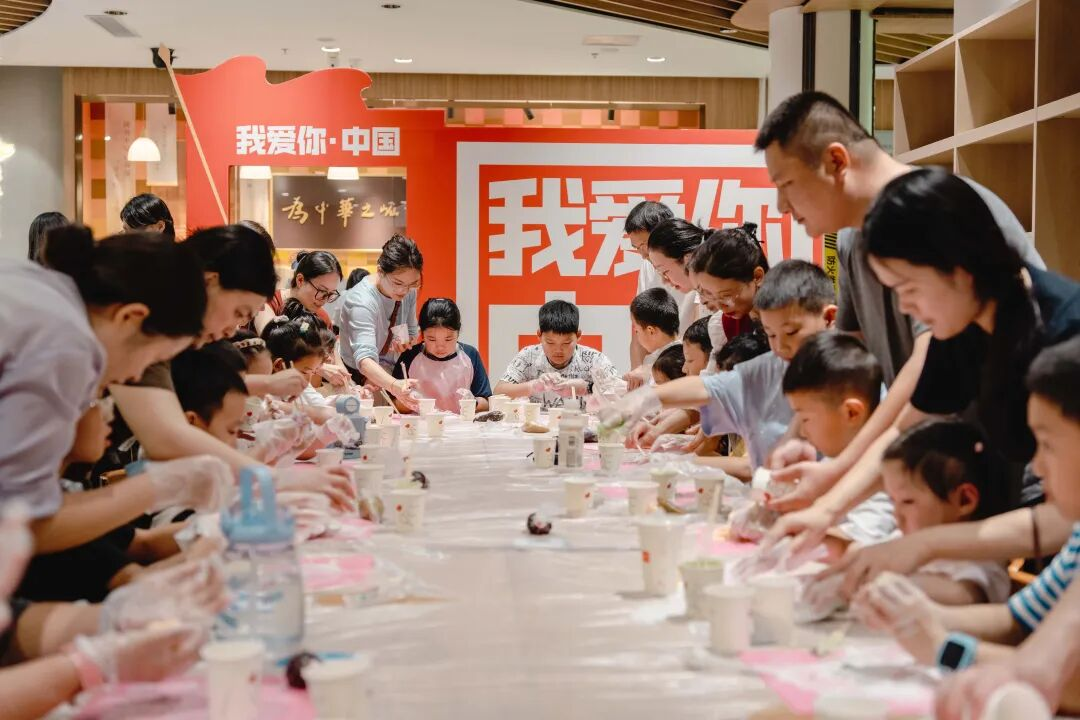 10月1日,广场组织花式表白祖国活动,工作人员讲解竹编非遗文化与“坚韧不拔、团结协作”的民族精神关联,小朋友亲手拓印+编织非遗竹编画,传递爱国情感。