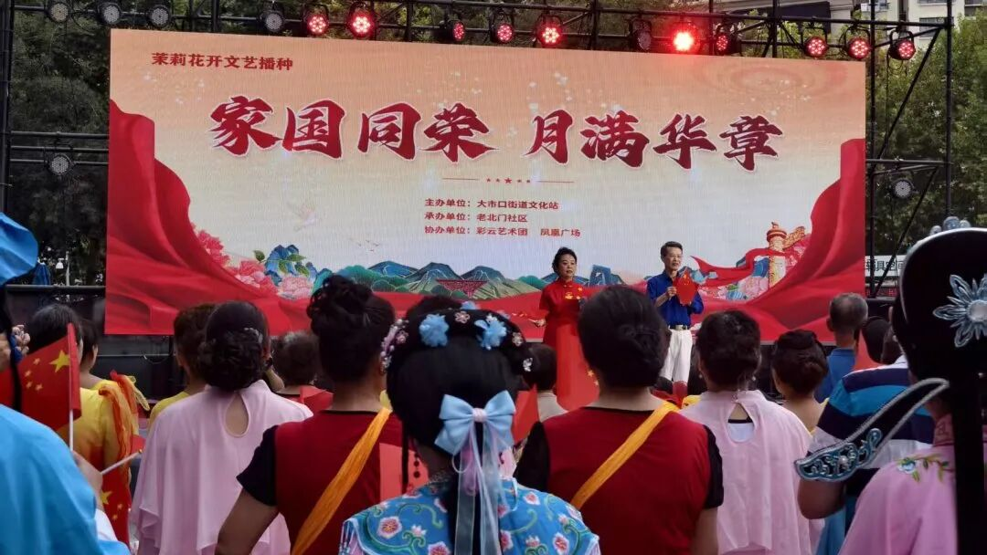 10月4日,广场联合大市口街道举办家国同荣·月满华章-庆国庆&中秋文艺汇演,载歌载舞,歌颂祖国。