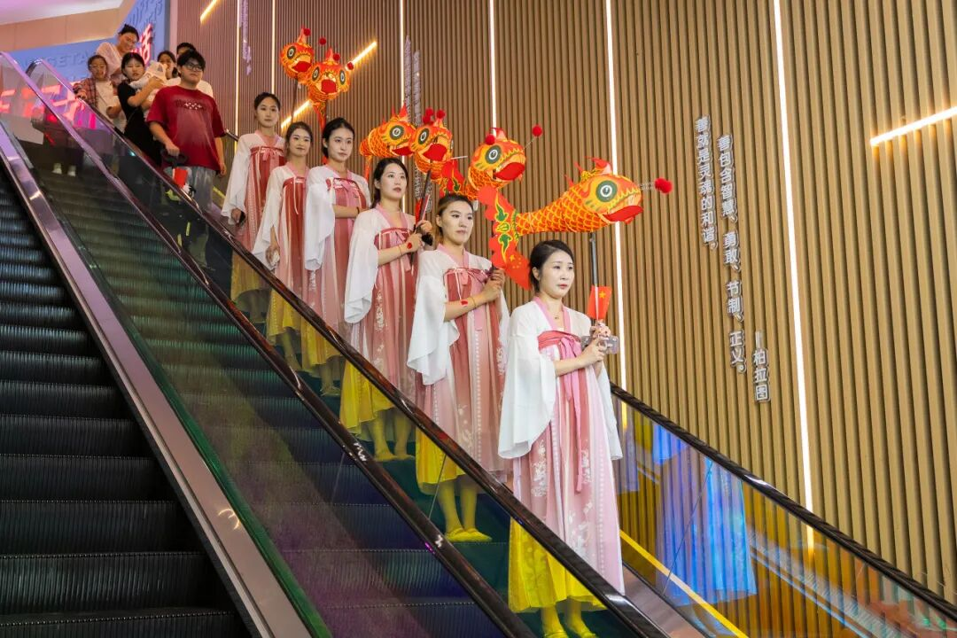 10月1日,广场组织鱼灯舞巡游表演,活化非物质文化遗产,迅速点燃活动现场的气氛。NPC巡游知识问答以问答游戏的形式呈现,趣味化普及中华文化知识,提高参与积极性。