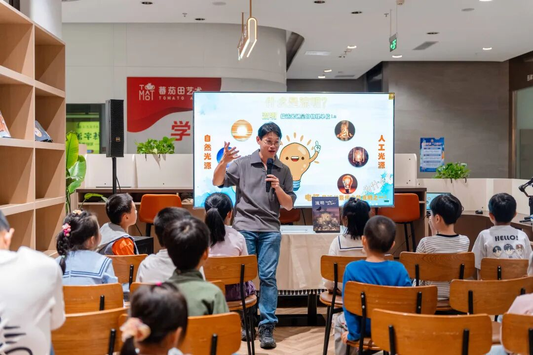 10月2日,广场组织主题为“谁把星星藏了起来”的《流明》科普阅读活动,开启了孩子们探索光与未来的奇妙旅程。特邀科普老师施永祺,带着孩子们走进一场关于光、自然与文明的温柔对话。