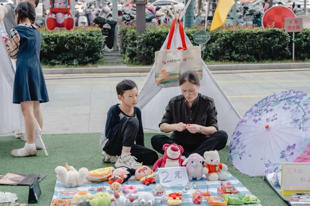 10月5日,举办国风团扇体验活动,招募30组亲子家庭参与;举办 “小摊主”二手市集,自带闲置物品(玩具、绘本、手工品等),广场免费提供摊位,设“经营小任务”:小摊主需自己定价、吆喝、记账,完成3笔交易可领“小老板勋章”。活动结束1小时开放“物物交换”,孩子用自己的物品换想要的东西,聚焦“分享与沟通”。