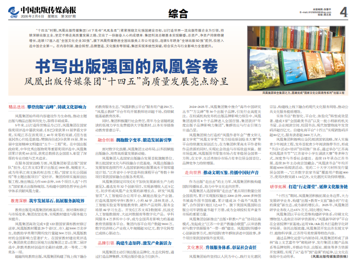 2月6日,《中国出版传媒商报》刊文聚焦凤凰集团"十四五"发展取得的成就,以下为报道全文。