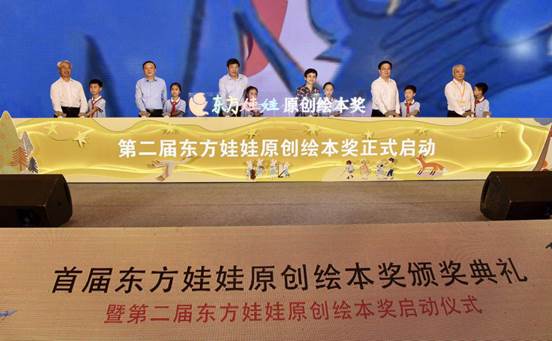 颁奖典礼结束后,领导和嘉宾与少年儿童代表一起,共同启动第二届东方娃娃原创绘本奖。