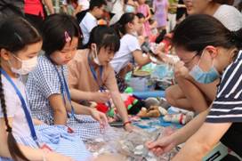 铺上地垫,放上图书玩具……从傍晚6点开始,下午参加义务劳动的小学生,又在家长的帮助下,摇身一变,成了“亲子市集”的“小老板”。