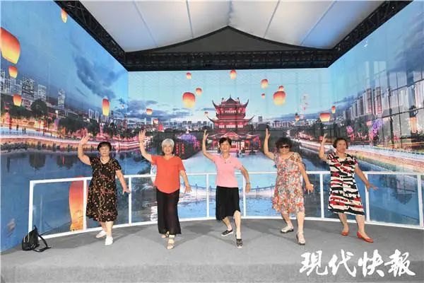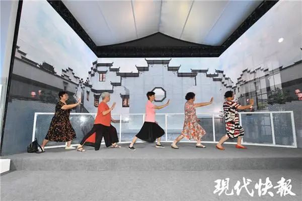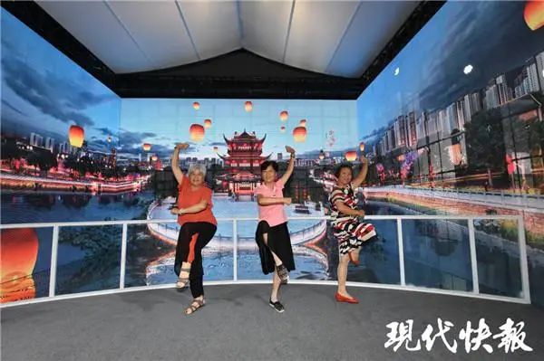 9月4日上午,一群阿姨直奔全息5G大运河展区,她们在裸眼3D沉浸式体验区打卡拍照,还打起太极,摆出了各种造型。
