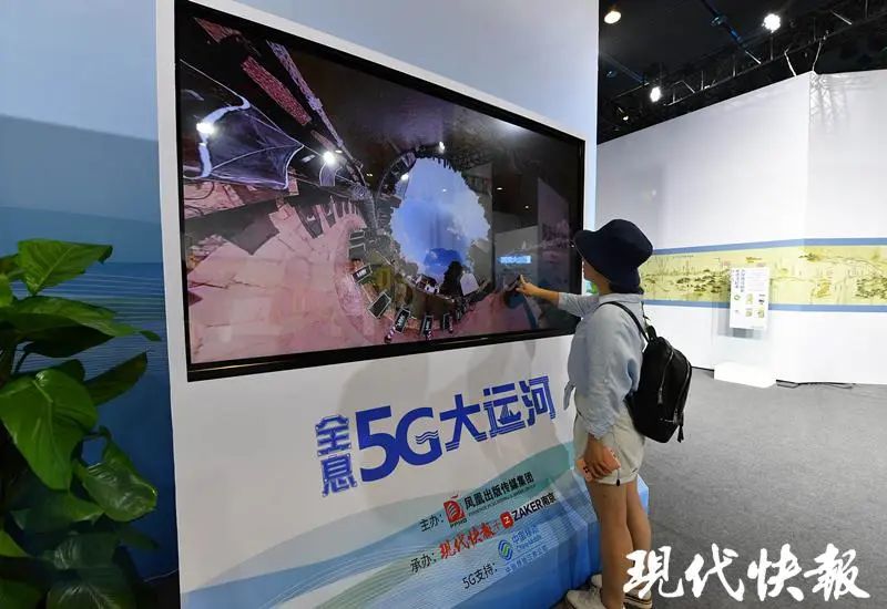 “全息5G大运河”展区,由凤凰出版传媒集团主办,现代快报+·ZAKER南京承办,中国移动江苏公司提供5G技术支持。
