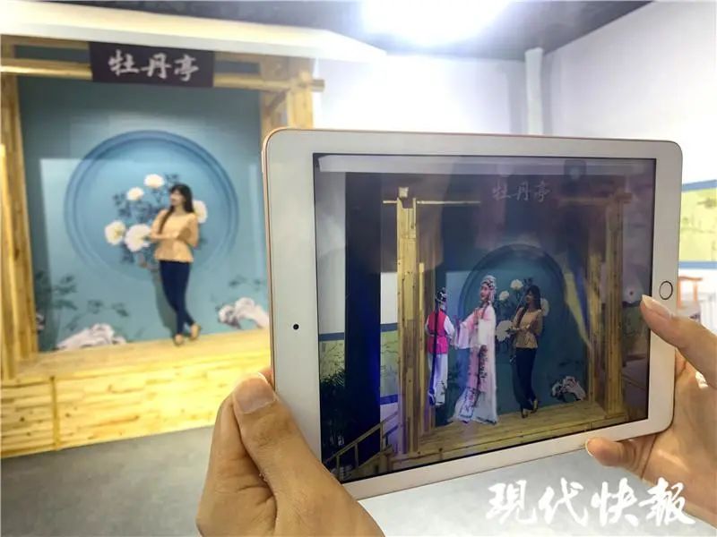在太湖之滨,昆曲像一颗明珠,闪耀夺目。在“全息5G大运河”展区,一座仿古的木质亭台,伫立在充满高科技的现代化展陈中,屋檐下挂着一块牌匾:牡丹亭。