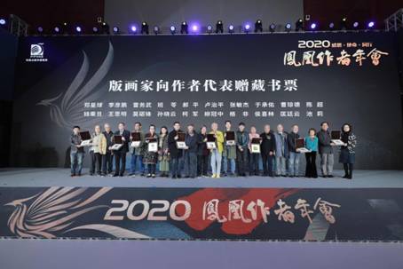 年会组委会特邀全国93位版画家,为凤凰的优秀作者一对一量身定制了94张藏书票,彰显高雅别致的书籍与艺术相结合的特色,以实际行动感恩作者、践行使命,与作者携手同行。年会现场,10位版画家代表为到场的著译者嘉宾赠送了藏书票。