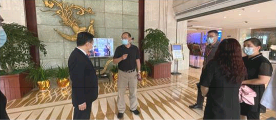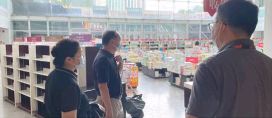 为贯彻落实省纪委、集团党委关于疫情防控的决策部署,监督保障集团疫情防控措施落实到位,7月28日下午,集团纪委书记、派驻监察专员金荣林采取“四不两直”方式分别到凤凰台饭店、新华书店集团总部、凤凰国际书城等重点窗口单位检查疫情防控工作,现场检查相关单位经营场所出入口核验健康码、测量体温、佩戴口罩等防控管理,了解员工核酸检测摸排、健康码异常人员跟踪管理、公共区域消杀、工程项目管理以及防疫物资保障等情况。