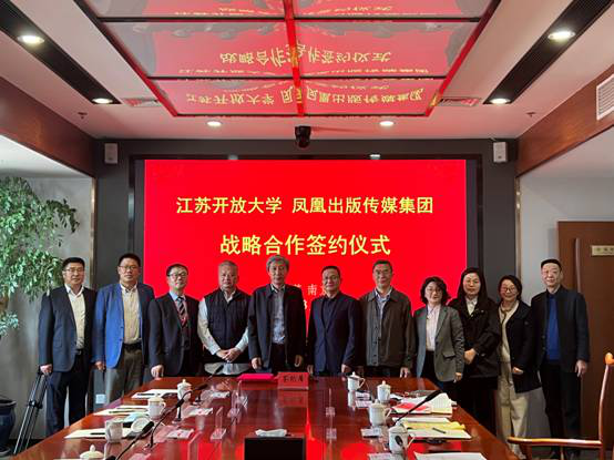 3月11日下午,凤凰出版传媒集团与江苏开放大学战略合作签约仪式在宁举行。凤凰出版传媒集团党委书记、董事长孙真福,江苏开放大学党委副书记、校长崔新有,凤凰传媒党委书记、总经理佘江涛,江苏开放大学副校长吴忠宁、张晓,凤凰职教出版中心总经理朱永贞出席签约仪式。
