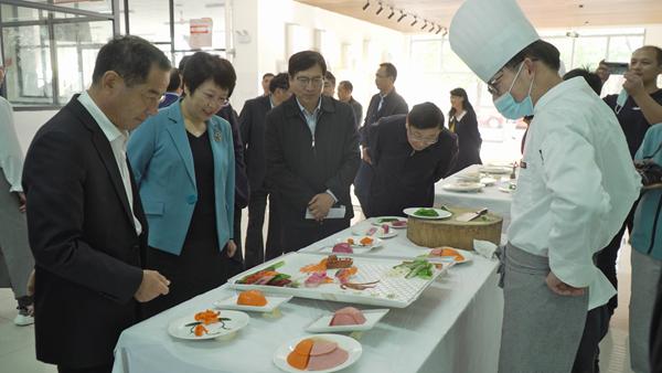 开幕式结束后,参会代表一起观摩淮安商业学校建筑工程和旅游烹饪两个赛点的竞赛现场。