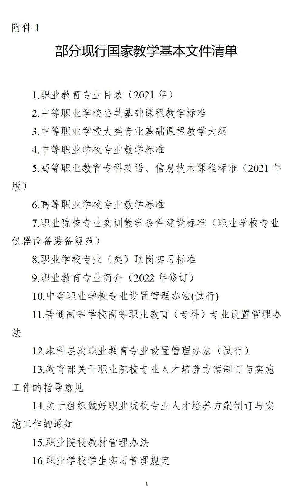 附件:1.部分现行国家教学基本文件清单