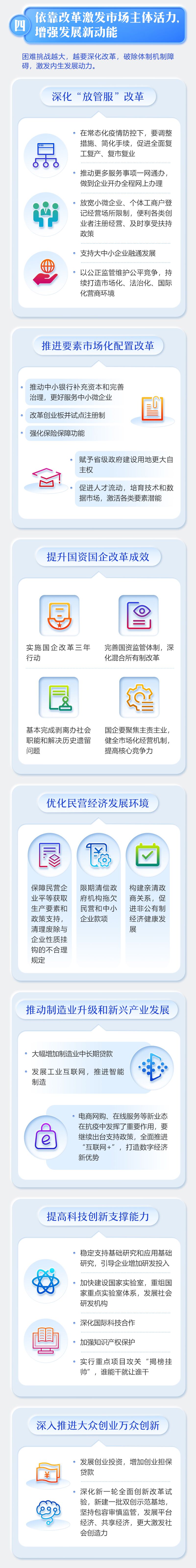 今年高校毕业生达874万人,要促进市场化社会化就业,高校和属地政府都要提供不断线的就业服务。做好退役军人就业保障。实行农民工在就业地平等享受就业服务政策。帮扶残疾人、零就业家庭等困难群体就业。我国包括零工在内的灵活就业人员数以亿计,今年对低收入人员实行社保费自愿缓缴政策,涉及就业的行政事业性收费全部取消。资助以训稳岗,今明两年职业技能培训3500万人次以上,高职院校扩招200万人,要使更多劳动者长技能、好就业。