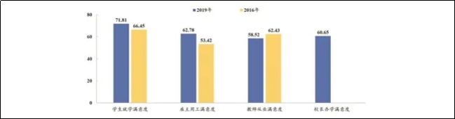图1:2019年和2016年全国中职教育满意度测评得分比较