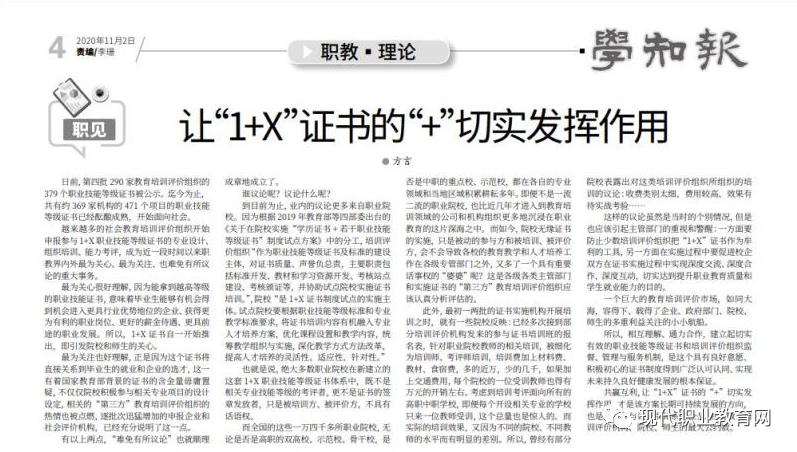 这样的议论虽然是当时的个别情况,但是也应该引起主管部门的重视和警醒:一方面要防止少数培训评价组织把“1+X”证书作为牟利的工具,另一方面在实施过程中要促进校企双方在证书实施过程中实现深度交流、深度合作、深度互动,切实达到提升职业教育质量和学生就业能力的目的。
