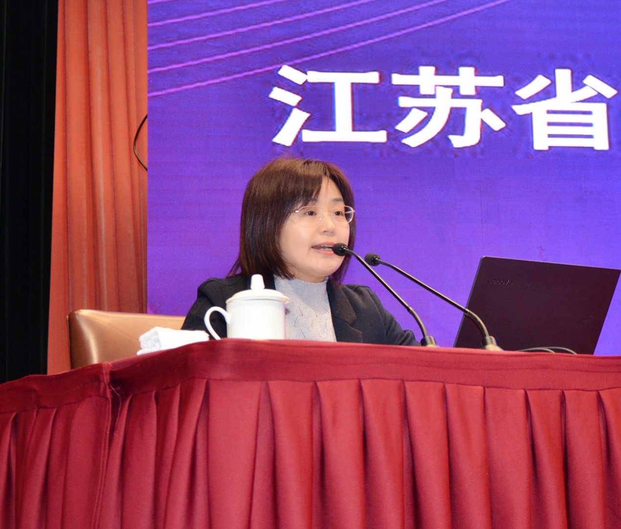 曹玉梅副厅长在年会上讲话。曹厅长指出2020年江苏职教战线在党中央的坚强领导下,严格落实省委省政府决策部署,多措并举披荆前行,在全面抗击疫情,抓好主责主业、全面贯彻落实中央和省的决策部署、构建完善纵向贯通横向融通的现代职教体系、营造利于教育链与产业链对接的发展环境等四个方面成绩突出亮点频现。曹厅长要求江苏职业教育要把习近平总书记对职业教育“大有可为”的殷切期待转化为职业教育“大有作为”的工作实践,江苏职业教育要在“争当表率、争做示范、走在前列”中“应势而动”,要在国民经济“十四五”发展规划的谋篇布局中“乘势而上”,要在职业教育改革创新大发展大变革的新时代“顺势而为”,全力做好苏锡常都市圈职业教育高质量样板建设,不断提升职业教育质量,进一步深化职业教育评价改革,进一步提升职业教育服务社会能力。