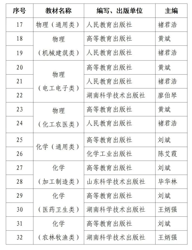 为贯彻全国职业教育大会精神,按照《职业院校教材管理办法》《中等职业学校公共基础课程方案》和中等职业学校数学、英语等7门公共基础课程标准要求,经有关单位申报、形式审查、专家审议、面向社会公示、专家审读完善等程序,最终遴选了17家出版单位的44种教材入选建设名单。13家出版单位的32种教材入选首批中等职业学校公共基础课程教材(详见附件1,其余教材后续公布),并将于2021年秋季学期起开始选用。现就有关事项通知如下。
