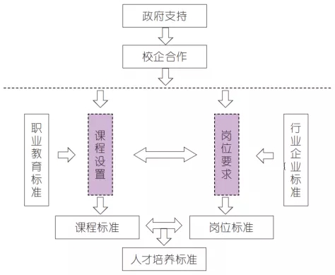 行业企业的岗位标准是职业教育人才培养标准制定的重要依据,要推进“政校行企”各方参与职业教育人才培养标准体系制定。“政校行企”协同育人标准体系建设的根本目标是使行业企业参与职业教育人才培养全过程,学生在实训基地、合作企业和职业院校交替完成相应课程,实现职业教育人才培养标准和行业企业人才需求的对应。实践证明,政府、学校、行业和企业只有加强协同育人,在人才培养标准体系建设中协同合作,才能制定符合行业企业需求的人才培养标准,从而精确对接行业企业人才需求。