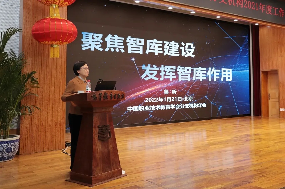 鲁昕会长在会上以《聚焦智库建设,发挥智库作用》为题发表了讲话。讲话从以习近平新时代中国特色社会主义思想指导智库建设,学习和落实2022年全国教育工作会议精神,分支机构名称内涵工作聚焦新要求等三个方面,就学会工作进行了深入论述。鲁昕指出,2021年,在新思想、新理念、新格局指导下,学会瞄准强国建设目标,紧跟科技进步和产业升级,向结构要质量、要水平,按照“总量调整、结构重建、功能优化、服务大局”的原则,通过“撤销一批、合并一批、更名一批、换届一批、成立一批”,对原有分支机构进行了战略性调整和结构性重塑。这是学会增强适应性的一项重要举措,为建设新时代覆盖国民经济各领域和社会事业各方面的智库型学会建设打下了良好的基础。鲁昕强调,2022年,学会和各分支机构要进一步深化习近平新时代中国特色社会主义思想的学习,立足“两个大局”和第二个百年奋斗目标,对标对表“十四五”规划和2035年远景目标纲要,跳出教育看教育、立足全局看教育、放眼长远看教育,为发展适应新技术和产业变革需要的职业教育不懈奋斗,以实际行动和优异成绩迎接党的二十大的胜利召开。