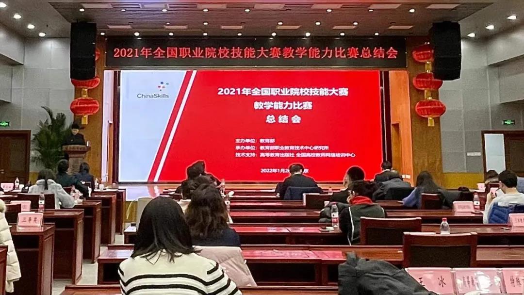 2022年1月26日,由教育部职成司主办,教育部职业技术教育中心研究所承办的2021年全国职业院校技能大赛教学能力比赛总结会在京召开。会议严格遵守疫情防控要求,采用“线上+线下”形式举行,教育部职业教育与成人教育司副司长林宇、教学与质量处处长黄辉、教师工作司教师发展处处长赵静、科学技术司教育信息化与网络安全处干部潘静文、教育部职业技术教育中心研究所所长王扬南、中华职业教育社二级巡视员王朝霞、湖南省教育厅副厅长王仁祥、中国教育科学研究院副院长马涛、国家开放大学副校长李松、中国教育电视台副台长陈宏、高等教育出版社党委常务副书记刘立国和副总编辑贾瑞武,以及教育部教育信息管理中心、中央电教馆、中国教育报等单位代表出席,教育部职业技术教育中心研究所副所长曾天山主持会议。在京的比赛执委会专家组成员、评委、各代表队领队、参赛教师以及新闻媒体代表现场参会,共有12万余人次在线上收看会议。会议总结了2021年比赛取得的成绩、积累的经验,分析了比赛的特点、存在的问题,提出了改进意见,努力把比赛越办越好,加快推进教学能力比赛改革,进一步发挥比赛对优秀教师成长的引领示范作用,激励广大教师创新育人方式,淬炼师德师能,践行育人使命,促进职业教育高质量发展。